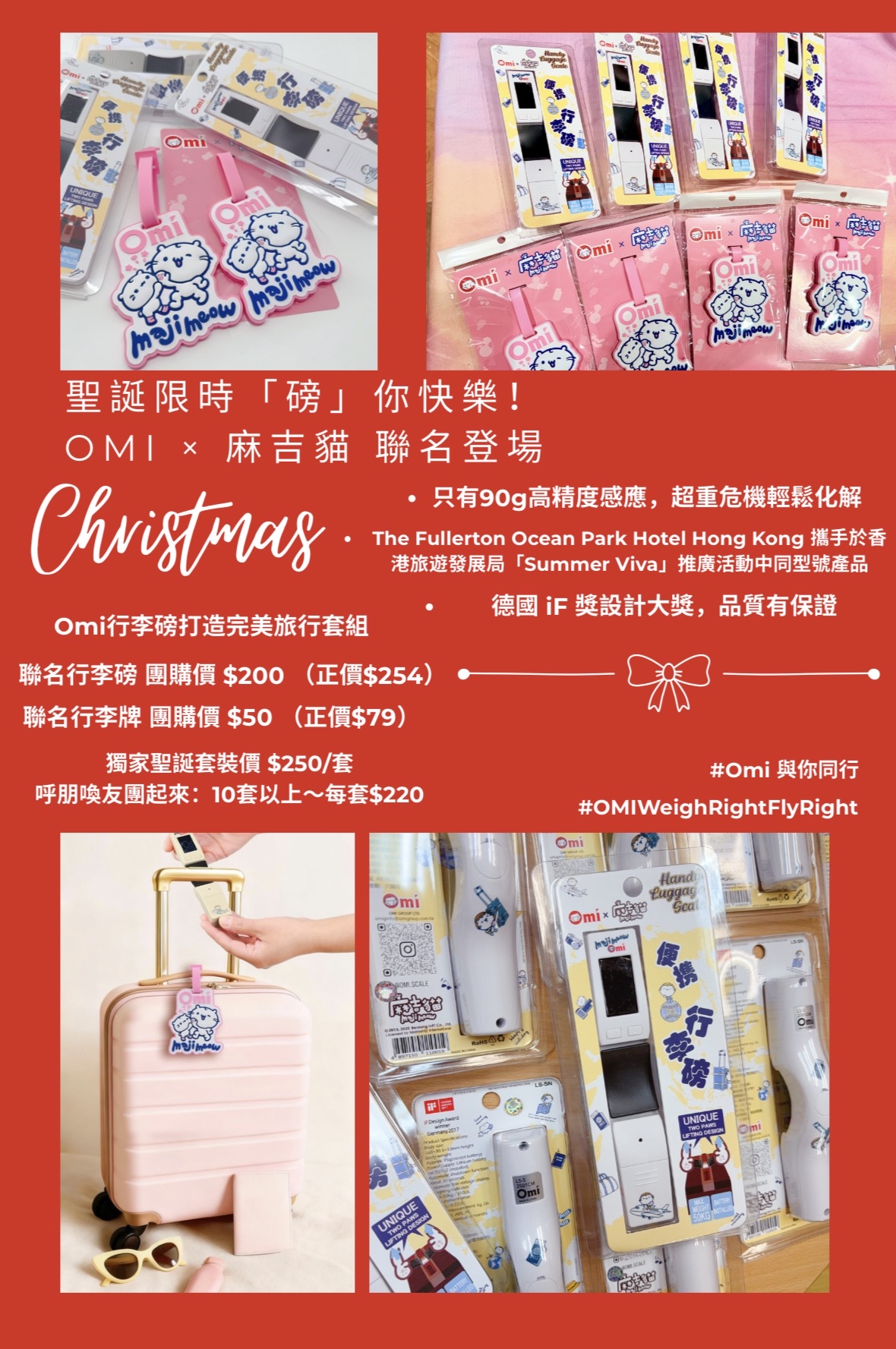 🎄聖誕限時「磅」你快樂!Omi × 麻吉貓 聯名登場 🐱🛍️🎉 聖誕老人送禮清單+1!麻吉貓化身行李小管家~✨✨ ,送禮自留都甜到心窩💕😘 💝聯名行李磅 🎄節日團購價 $200 (正價$254) 💝聯名行李牌 🎄節日團購價 $50 (正價$79) 🎅 獨家聖誕套裝價 $250/套 🛍️ 呼朋喚友團起來:10套以上~每套$220 呢個聖誕,讓萌寵守護你的每一次出發! 暖心價,萌翻你,手慢🈚️!🎉